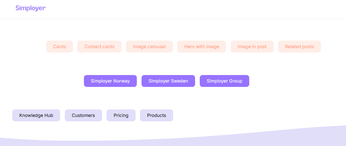 - Purple / Light purple / Purple outline / Light purple outline / Orange / Light orange / Link / Pills