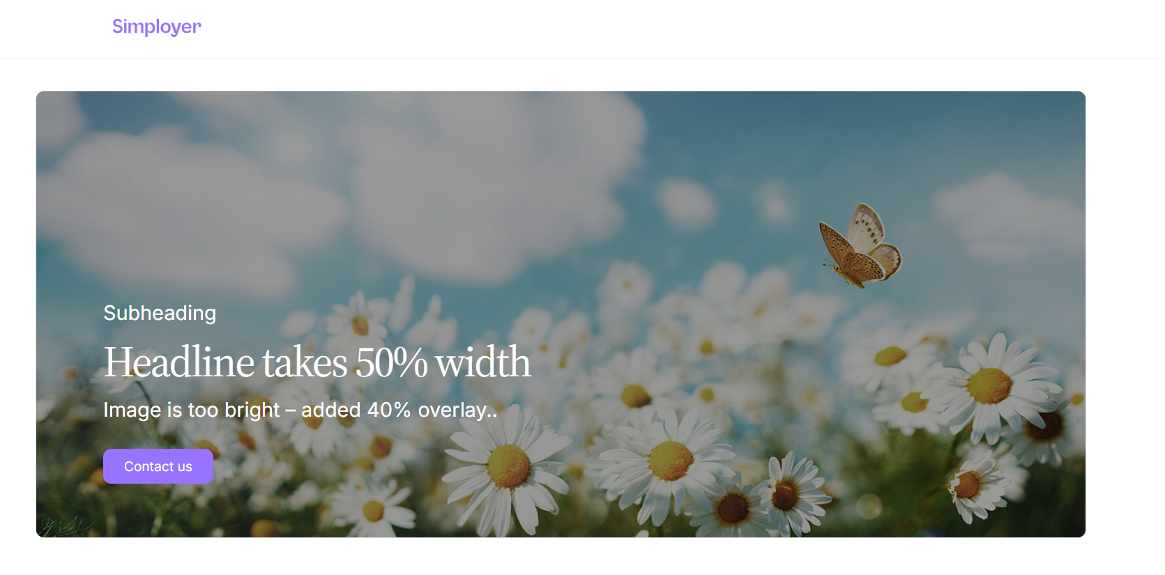 - Apply a dark overlay (20% or 40%) to ensure the white text remains readable.